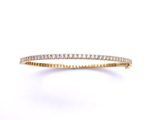 This gorgeous bangle bracelet is oval shaped for comfort, and is hinged for ease of wear.  But the stars of the show are the 1.14 carats of diamonds, all set in 14K yellow gold.  Retail price $4560.00