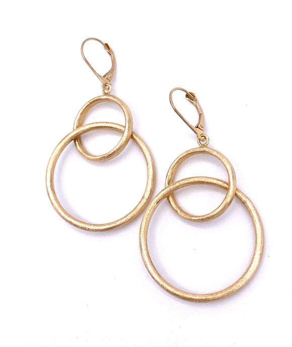 Yellow Gold Double Circle Dangle Earrings F312LE825