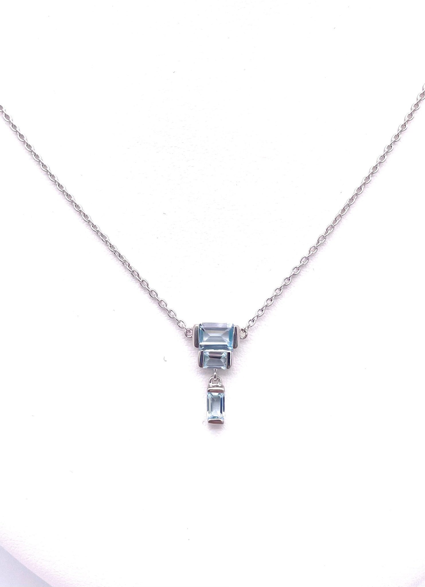 This beautiful blue topaz and sterling necklace comes from the Deco Collection by Jorge Revilla Spain. Retail price $235.00