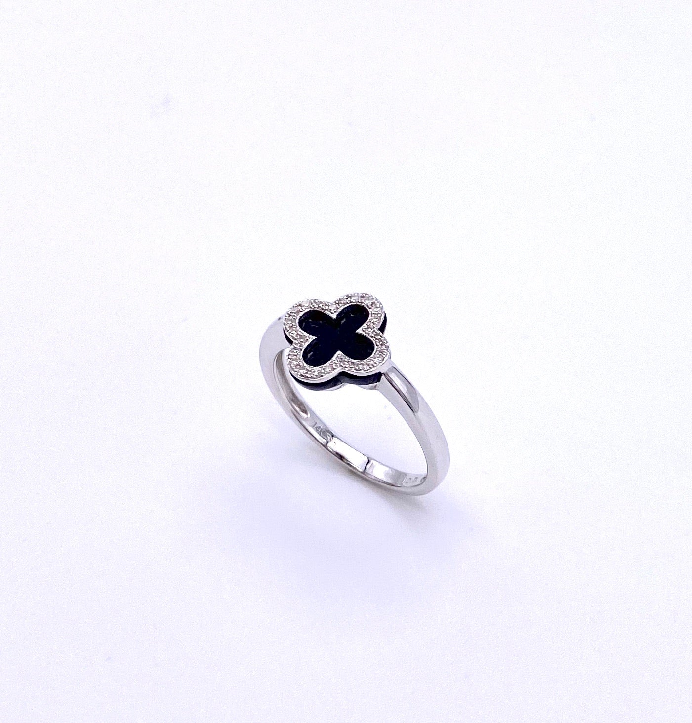 This ring features black onyx and diamond mele in a cross design, all set in 14K white gold.  Retail price $795.00