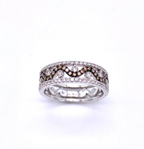 This pretty ring features a total of .56 carats of diamonds, some chocolate, in a pretty wave design, all set in 14K white gold. Retail price $3100.00
