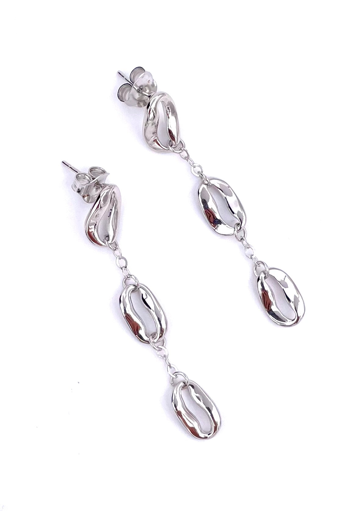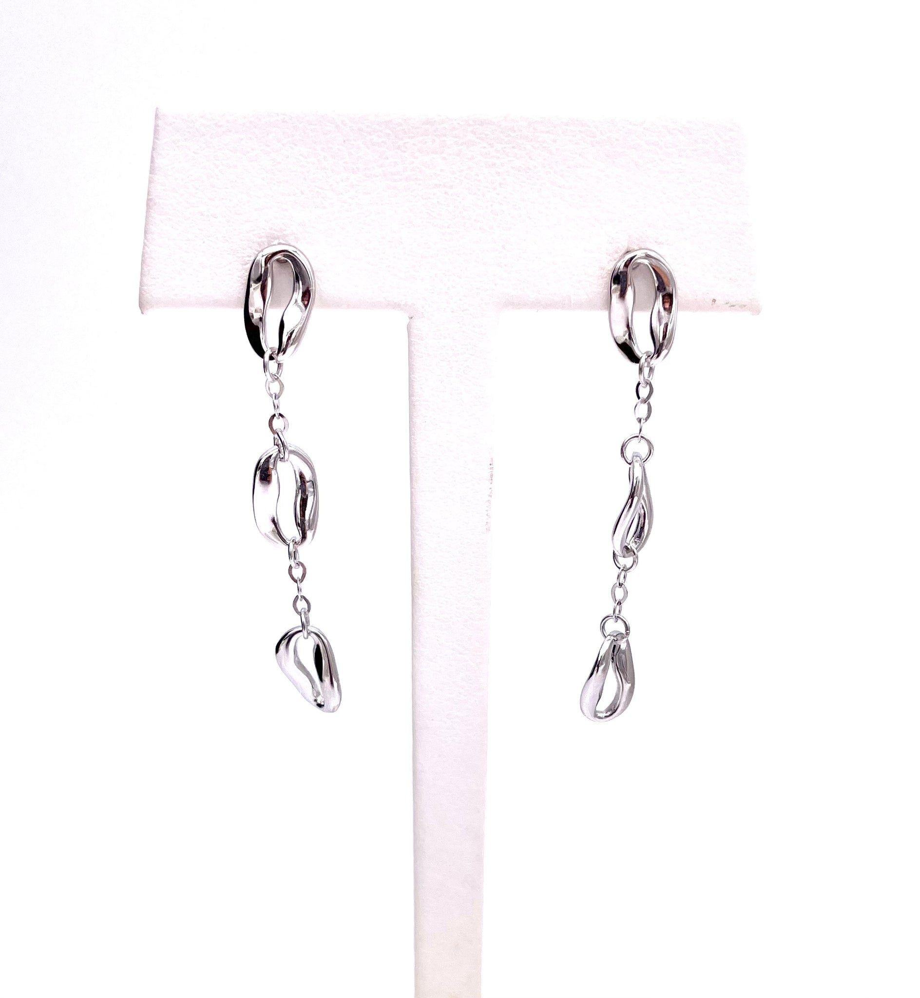 These long dangle earrings come from the Bean Collection by Jorge Revilla Spain. They are made of sterling silver and have a retail price of $185.00